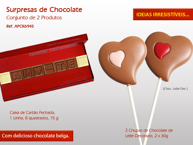 Ref. APCK694S - ChocoTelegram AMO-TE + 2 Chupas de Chocolate Coração, 2x30 g