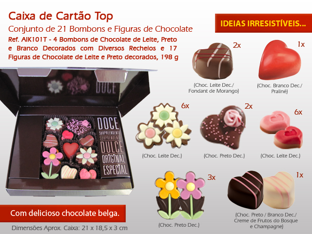 Ref. AIK101T - Sortido de 21 Bombons e Figuras de Chocolate, 198 g