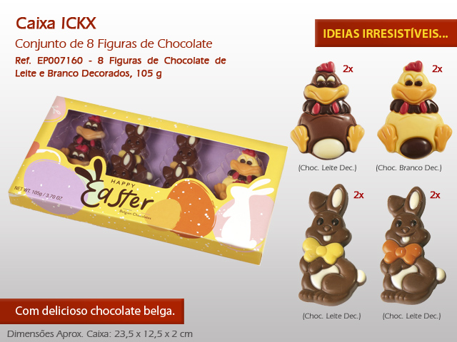 Caixa Premium ICKX - Conj. Figuras de Chocolate de Leite Decorado, 105 g Ref. EP007160