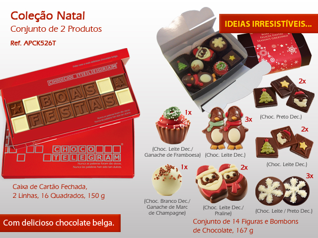Ref. APCK526T - ChocoTelegram BOAS FESTAS + Sortido de Figuras e Bombons de Chocolate, 167 g