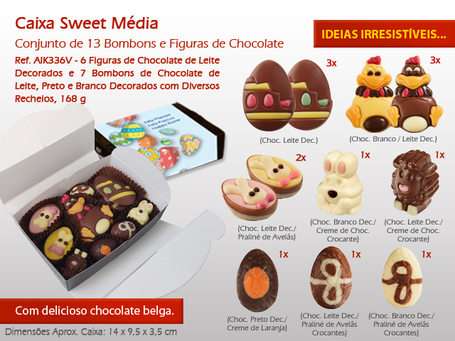 Ref. AIK336V - Sortido de 12 Bombons e Figuras de Chocolate, 168 g